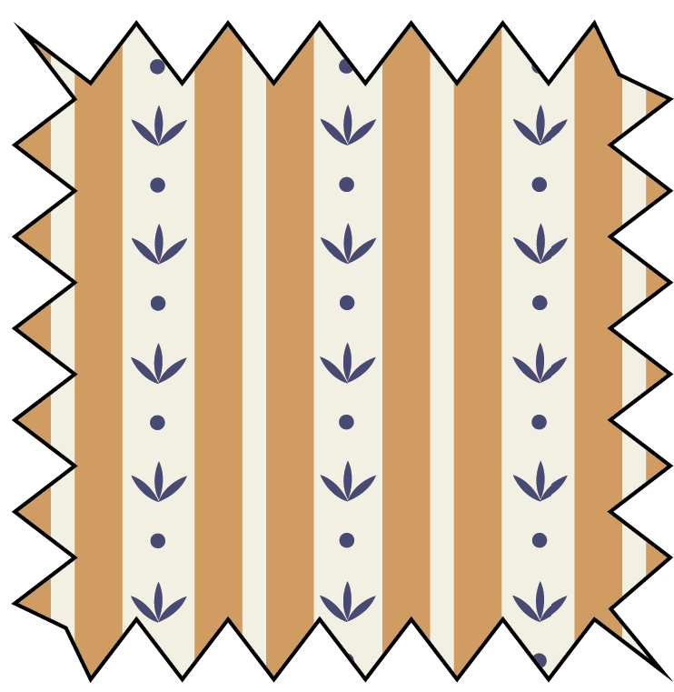 The top is a cotton corset with a purple striped textile design on it with solid purple boning channels. on the side of the corset is pearl detailing as sleeves.