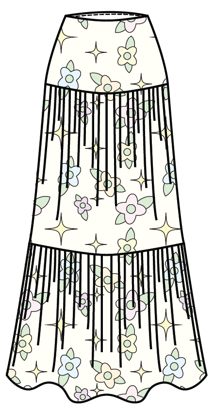 The skirt is made from 100% Bamboo Linen as well. The tiered skirt allows for free movement and fun. The waist has a bit of elastic to help to put it on.