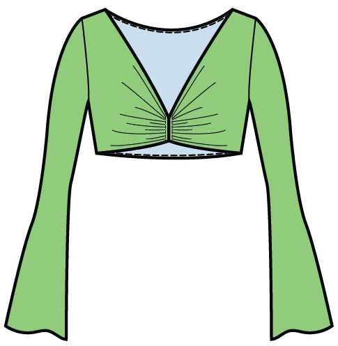The top is made from 100% Linen. The open neck, as well as the elasticized ruching, is to help with putting it on easier.